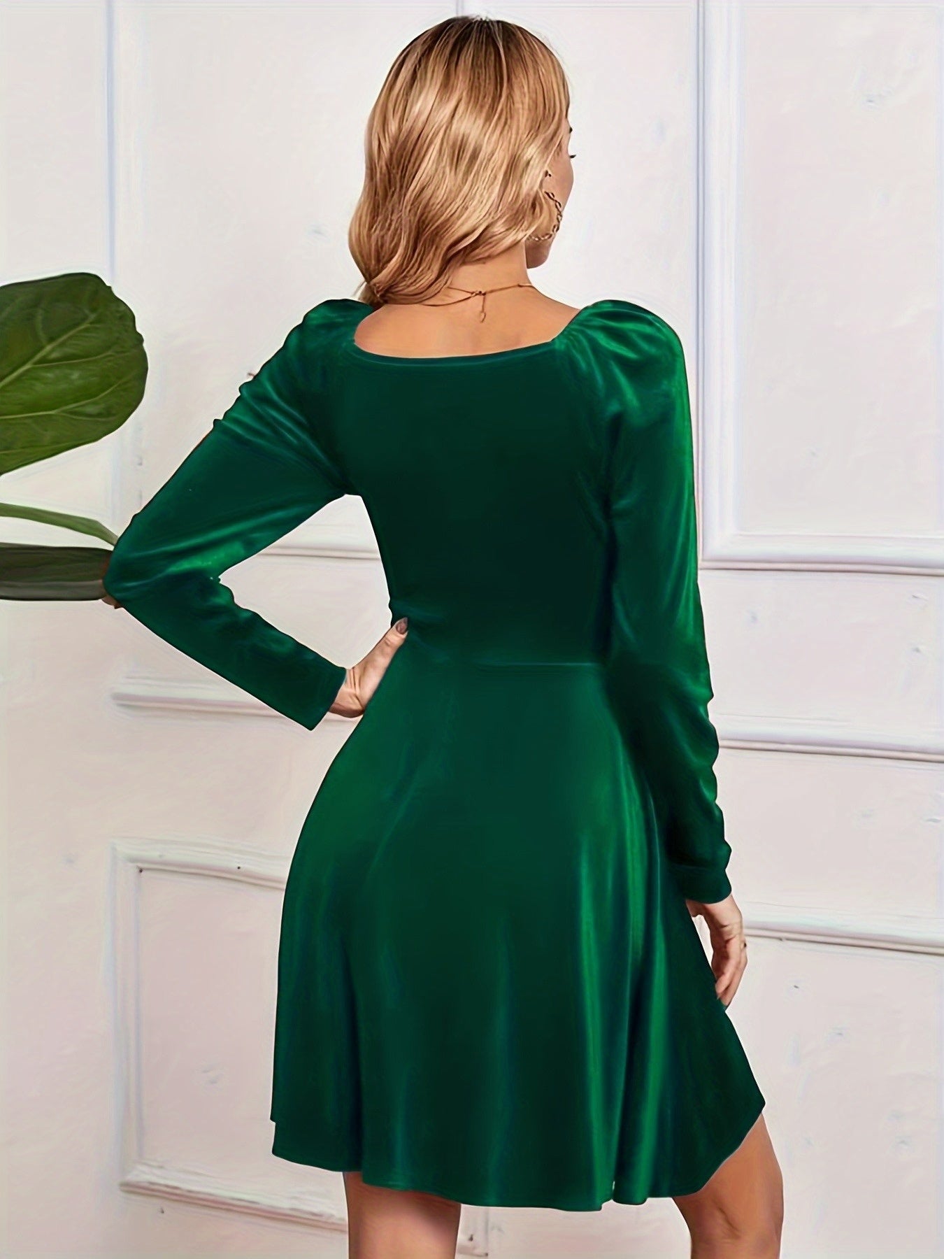 June brings a touch of velvet magic to every moment. With its smooth, luminous finish, graceful V-neckline, and gently cinched waist, this dress is designed to flatter your figure while feeling incredibly comfortable. The flowing skater-style skirt adds movement and charm, making June perfect for parties, dinners, celebrations, or any occasion where you want effortless elegance.