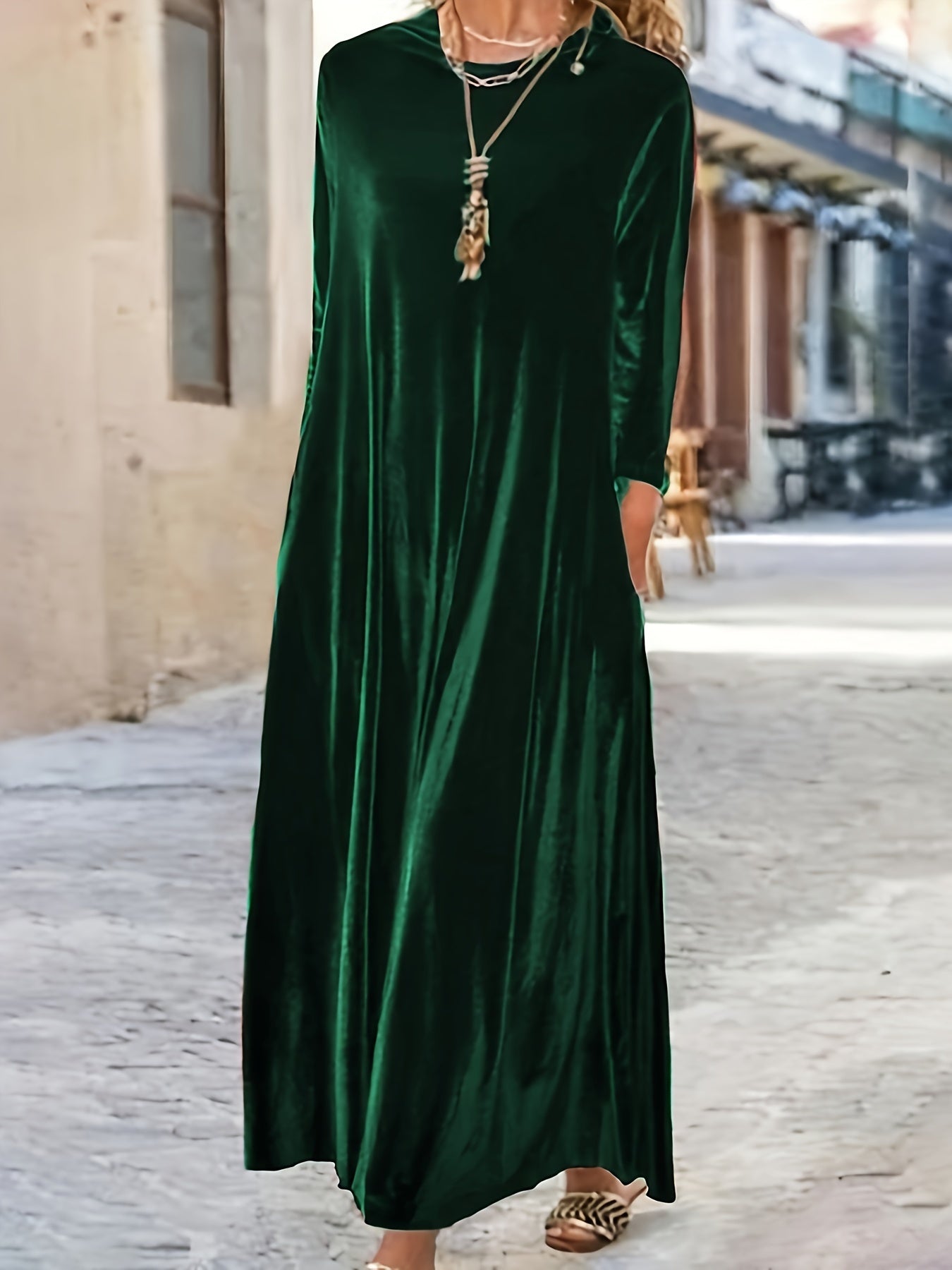 Nessa is the dress that transforms simplicity into pure sophistication. With its long, flowing silhouette and rich velvet drape, this maxi dress brings timeless elegance to every moment. The relaxed fit and soft fall of the fabric create a look that is both flattering and unbelievably comfortable - perfect for evenings out, gatherings, celebrations, or when you simply want to feel beautifully put together.