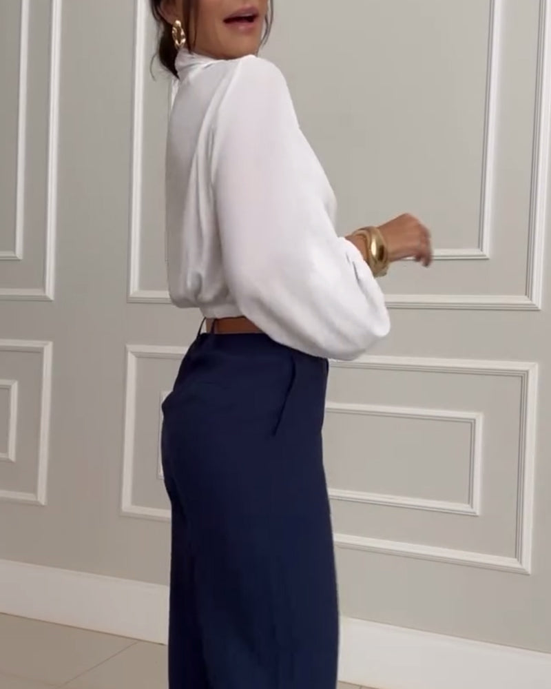 Trendy Lantern Sleeve Blouse with Solid V-Neck